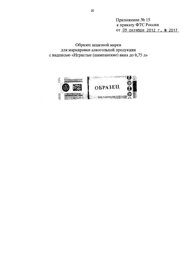 "ОБ УТВЕРЖДЕНИИ ОБРАЗЦОВ, ПЕРЕЧНЯ РЕКВИЗИТОВ И ЭЛЕМЕНТОВ ЗАЩИТЫ АКЦИЗНЫХ МАРОК ДЛЯ МАРКИРОВКИ АЛКОГОЛЬНОЙ ПРОДУКЦИИ"