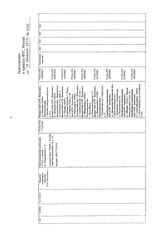 ПРИКАЗ ФТС РФ от 14.12.2012 N 2542