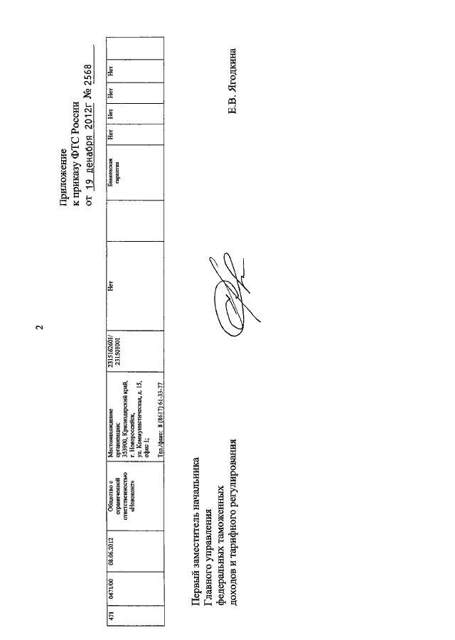 ПРИКАЗ ФТС РФ от 19.12.2012 N 2568