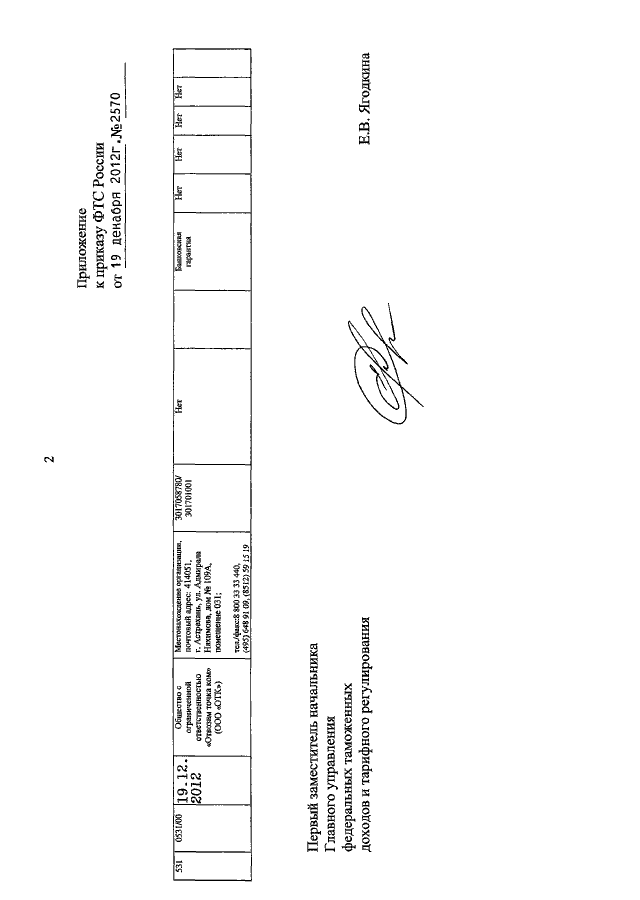 ПРИКАЗ ФТС РФ от 19.12.2012 N 2570