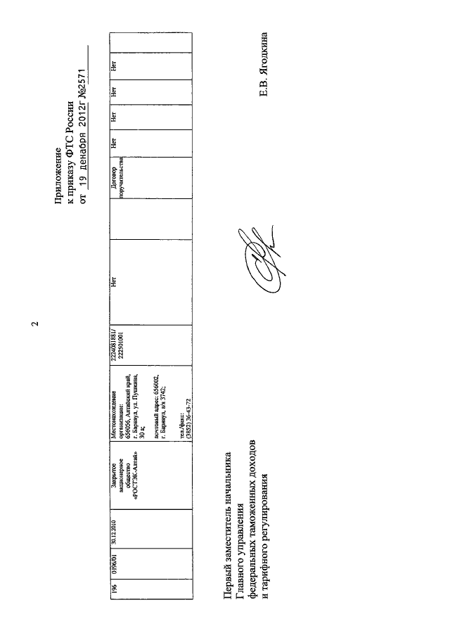 ПРИКАЗ ФТС РФ от 19.12.2012 N 2571