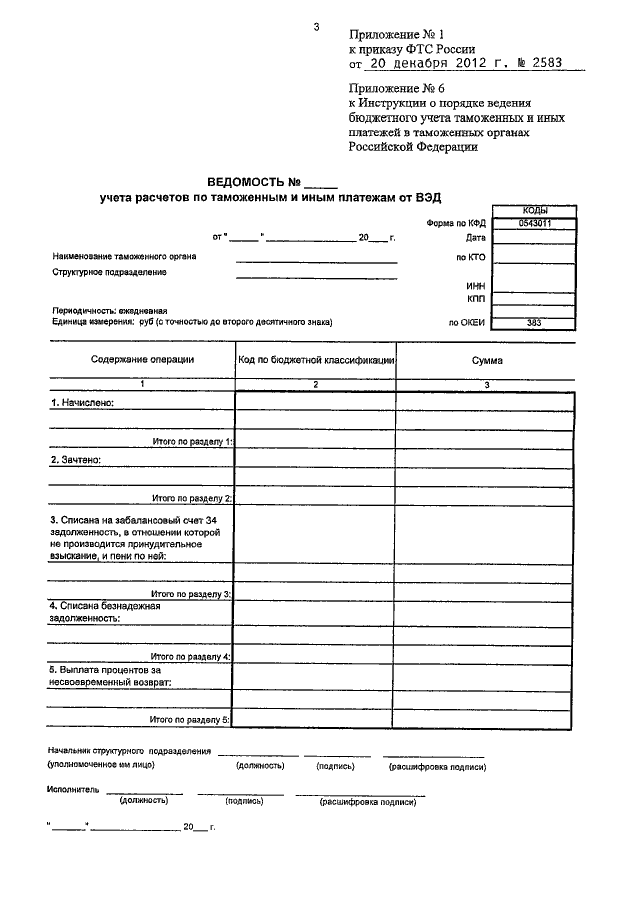 ПРИКАЗ ФТС РФ от 20.12.2012 N 2583
