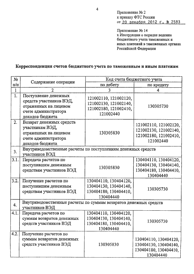 ПРИКАЗ ФТС РФ от 20.12.2012 N 2583