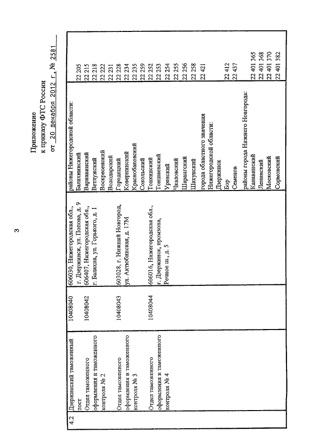 ПРИКАЗ ФТС РФ от 20.12.2012 N 2581