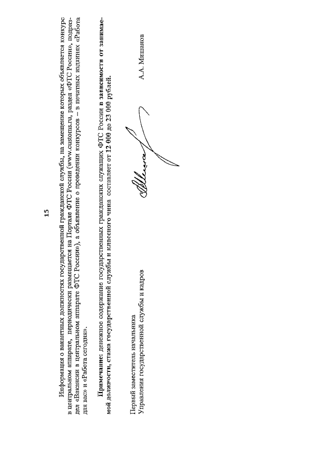 "ОБ ОБЪЯВЛЕНИИ КОНКУРСА НА ЗАМЕЩЕНИЕ ВАКАНТНЫХ ДОЛЖНОСТЕЙ ГОСУДАРСТВЕННОЙ ГРАЖДАНСКОЙ СЛУЖБЫ В ЦЕНТРАЛЬНОМ АППАРАТЕ ФТС РОССИИ"