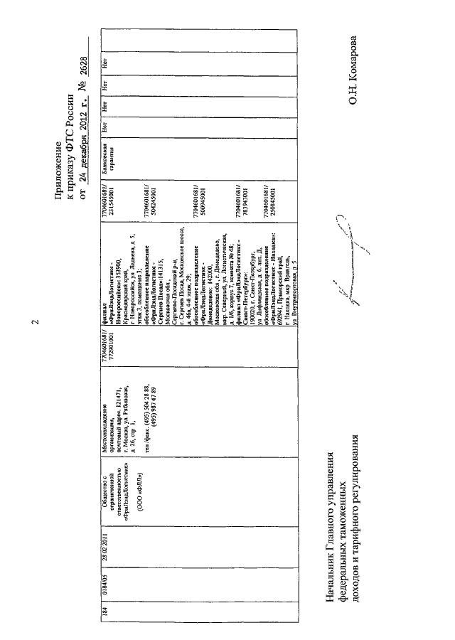 ПРИКАЗ ФТС РФ от 24.12.2012 N 2628