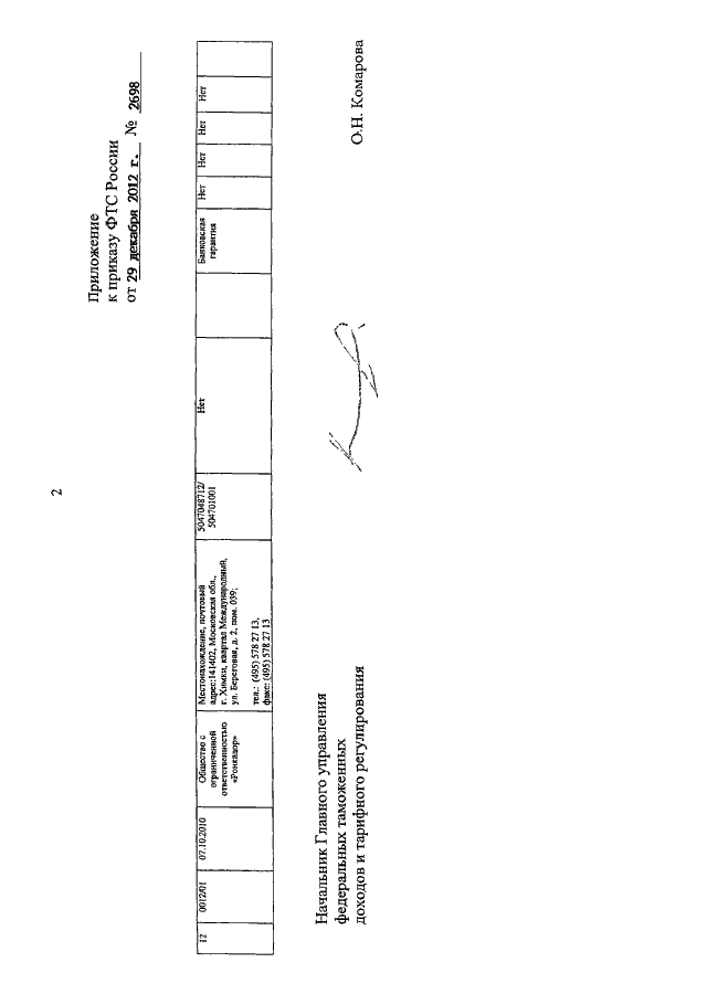 ПРИКАЗ ФТС РФ от 29.12.2012 N 2698