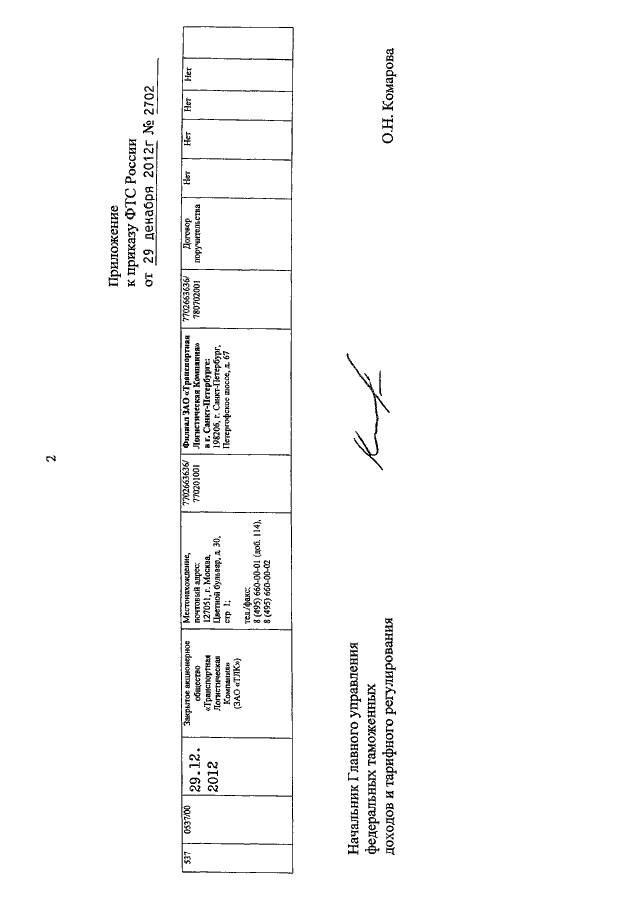 ПРИКАЗ ФТС РФ от 29.12.2012 N 2702