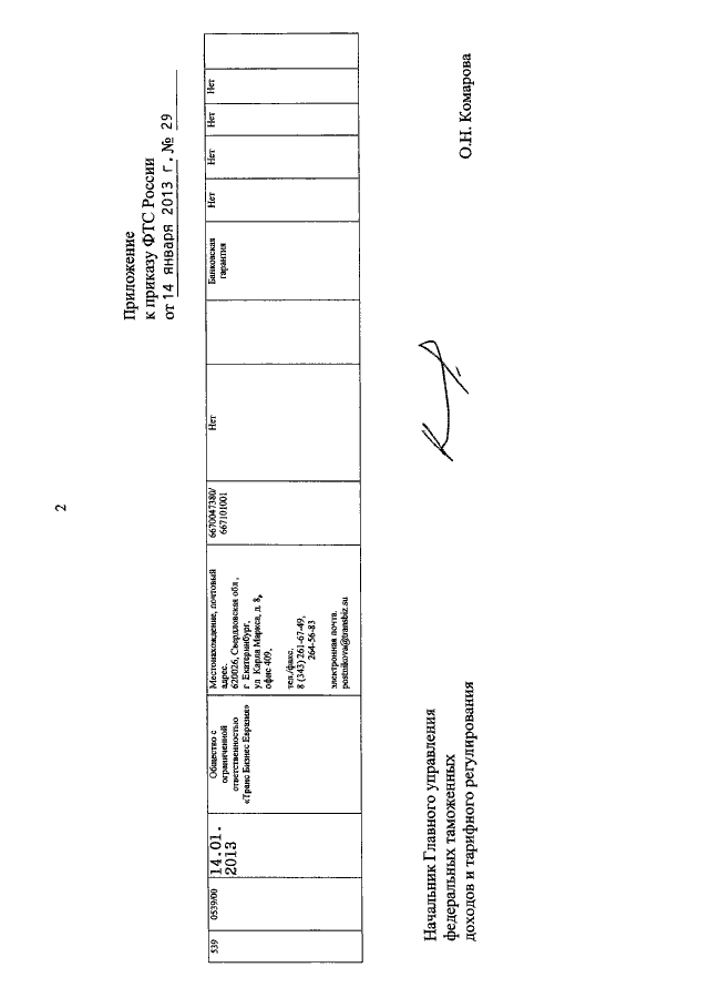 ПРИКАЗ ФТС РФ от 14.01.2013 N 29