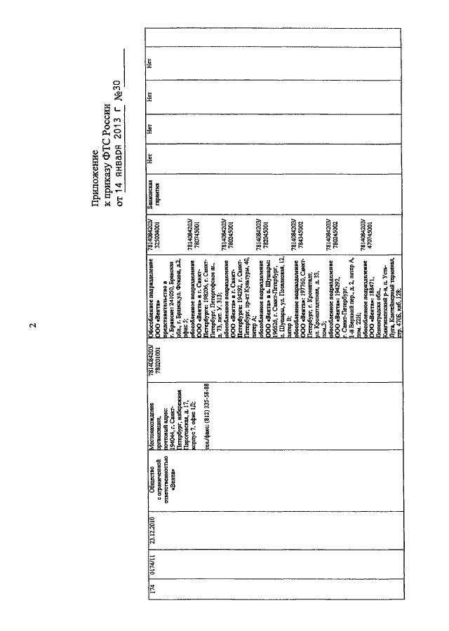 ПРИКАЗ ФТС РФ от 14.01.2013 N 30