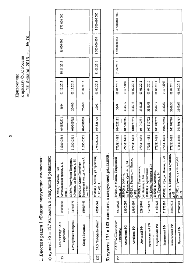 ПРИКАЗ ФТС РФ от 18.01.2013 N 76
