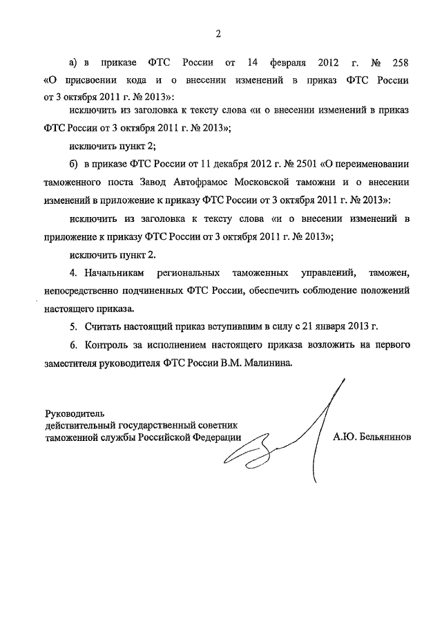 ПРИКАЗ ФТС РФ от 18.01.2013 N 82