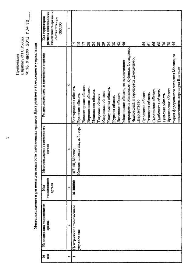 ПРИКАЗ ФТС РФ от 18.01.2013 N 82