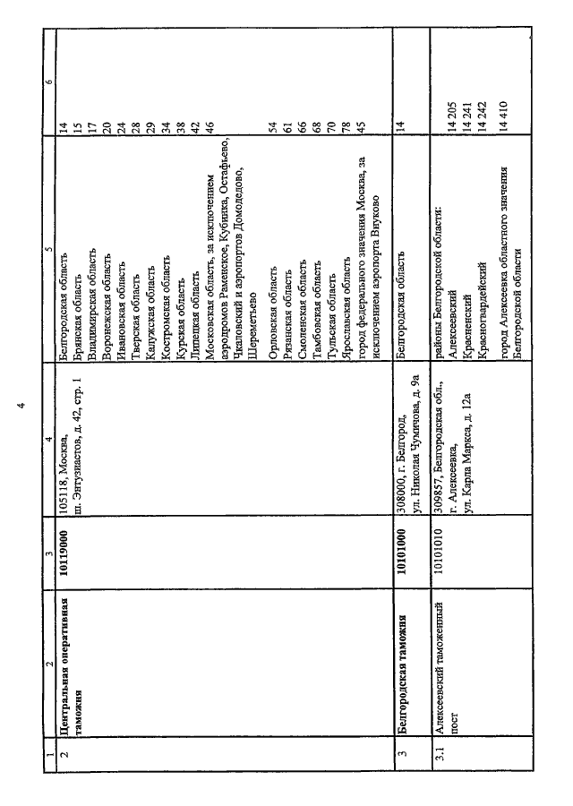 "О МЕСТОНАХОЖДЕНИИ И РЕГИОНАХ ДЕЯТЕЛЬНОСТИ ТАМОЖЕННЫХ ОРГАНОВ ЦЕНТРАЛЬНОГО ТАМОЖЕННОГО УПРАВЛЕНИЯ"