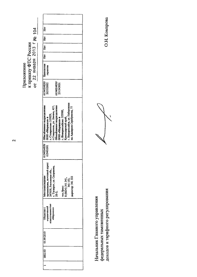 ПРИКАЗ ФТС РФ от 22.01.2013 N 104