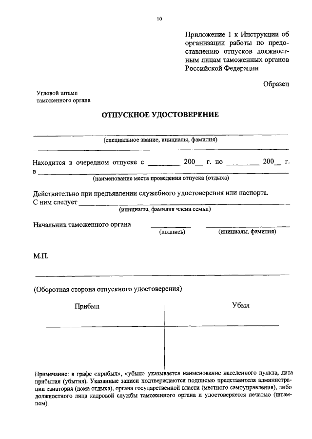 "ОБ УТВЕРЖДЕНИИ ИНСТРУКЦИИ ОБ ОРГАНИЗАЦИИ РАБОТЫ ПО ПРЕДОСТАВЛЕНИЮ ОТПУСКОВ ДОЛЖНОСТНЫМ ЛИЦАМ ТАМОЖЕННЫХ ОРГАНОВ РОССИЙСКОЙ ФЕДЕРАЦИИ"