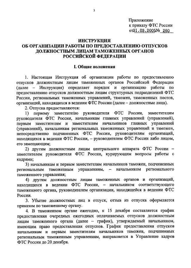 ПРИКАЗ ФТС РФ от 31.03.2005 N 260