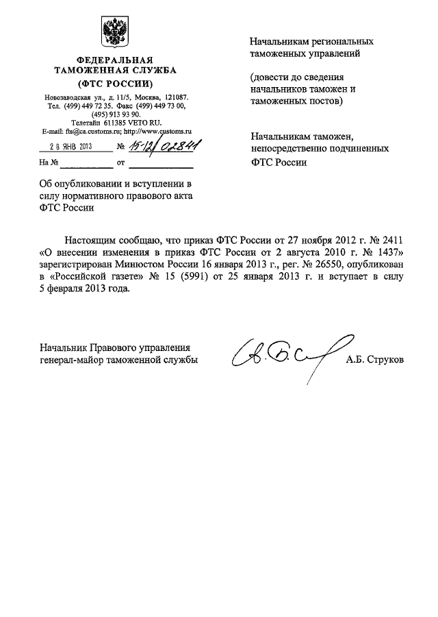 ПИСЬМО ФТС РФ от 28.01.2013 N 15-12/02841