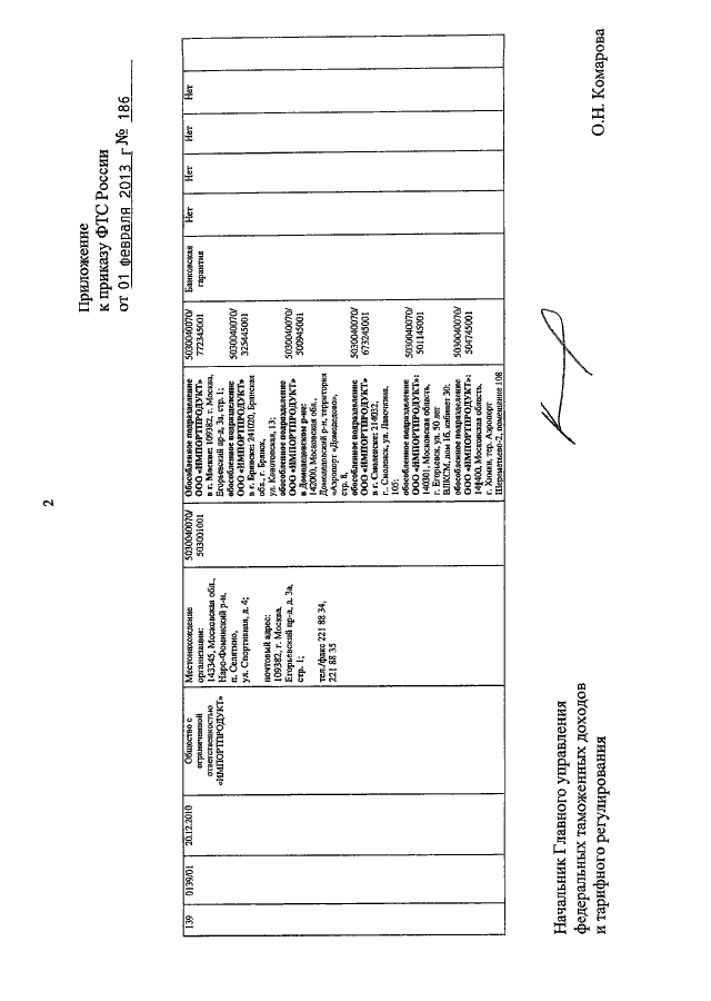 ПРИКАЗ ФТС РФ от 01.02.2013 N 186