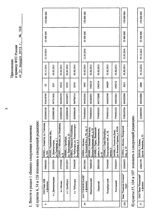 ПРИКАЗ ФТС РФ от 31.01.2013 N 168