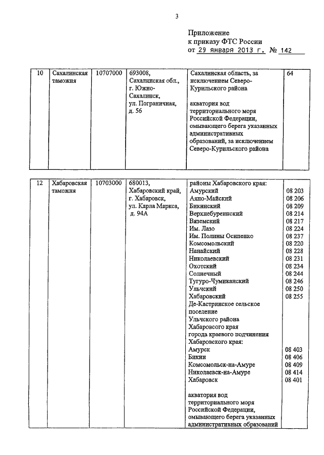 ПРИКАЗ ФТС РФ от 29.01.2013 N 142