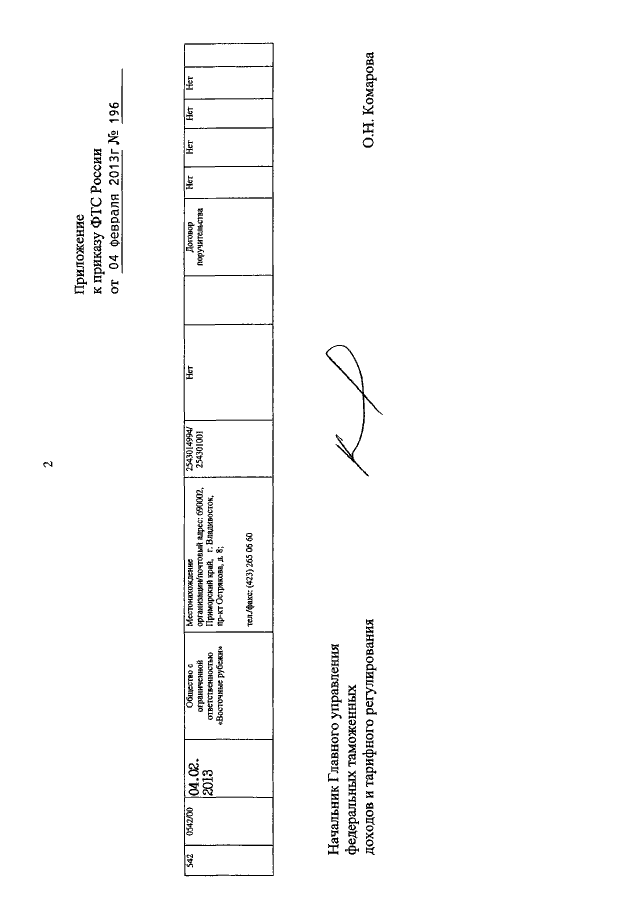 ПРИКАЗ ФТС РФ от 04.02.2013 N 196