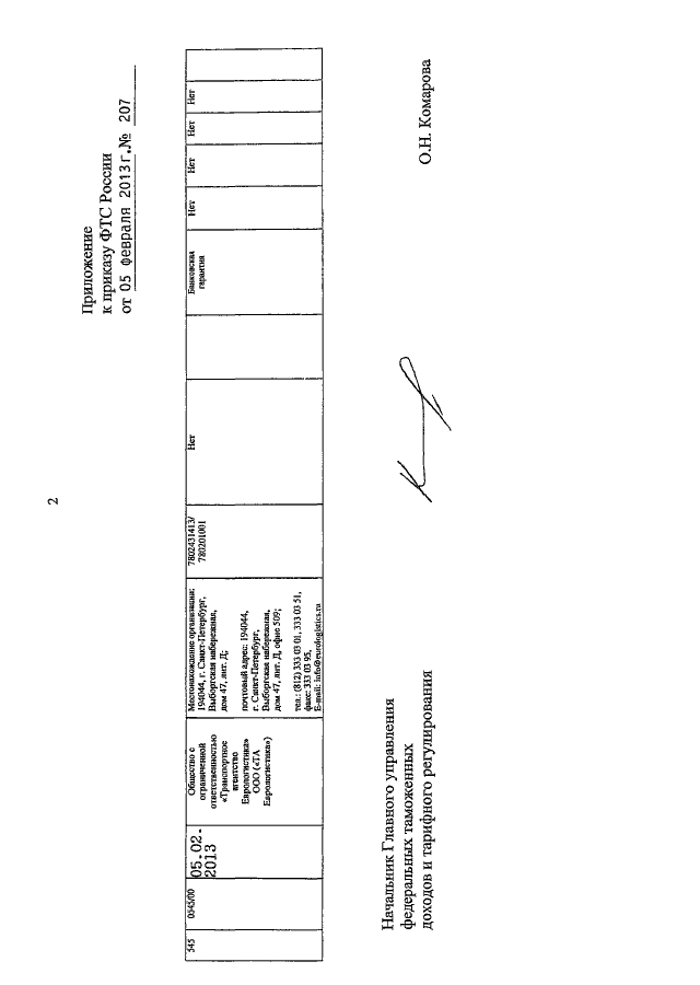 ПРИКАЗ ФТС РФ от 05.02.2013 N 207
