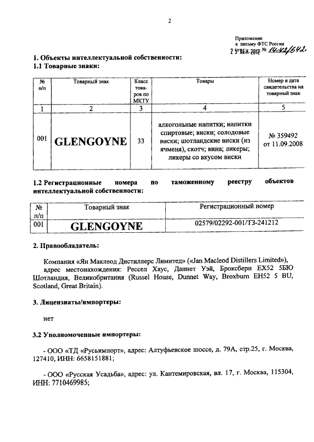 "О ТОВАРНОМ ЗНАКЕ "GLENGOYNE"