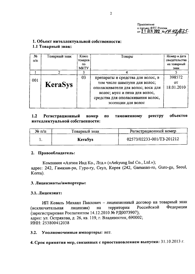 "О ТОВАРНОМ ЗНАКЕ "KERASYS"