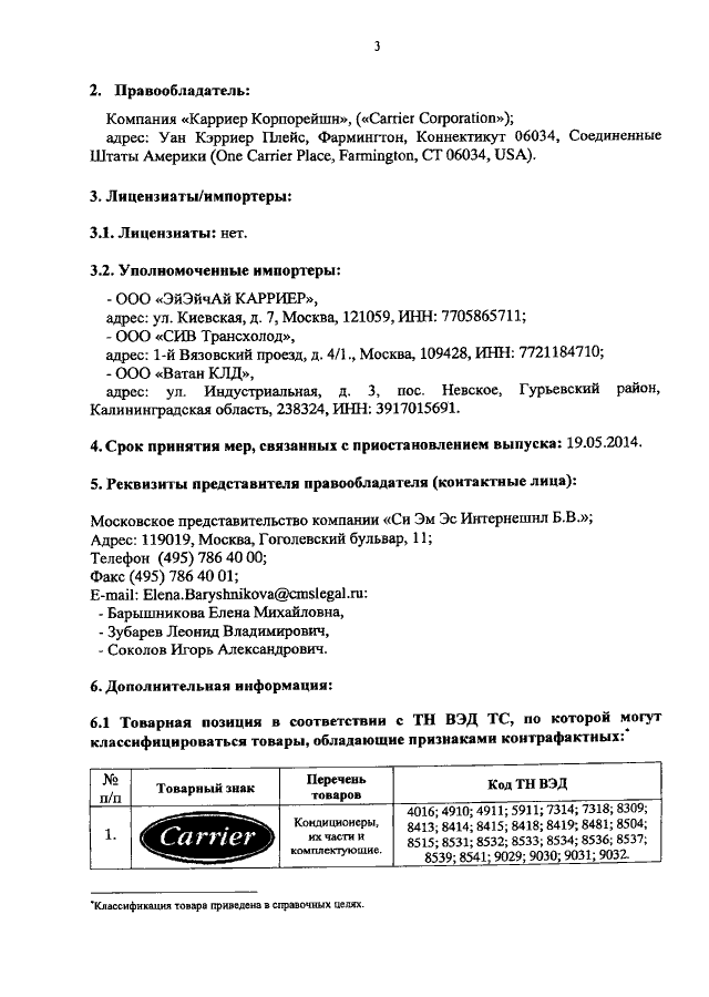 "О ТОВАРНЫХ ЗНАКАХ КОМПАНИИ "КАРРИЕР КОРПОРЕЙШН"