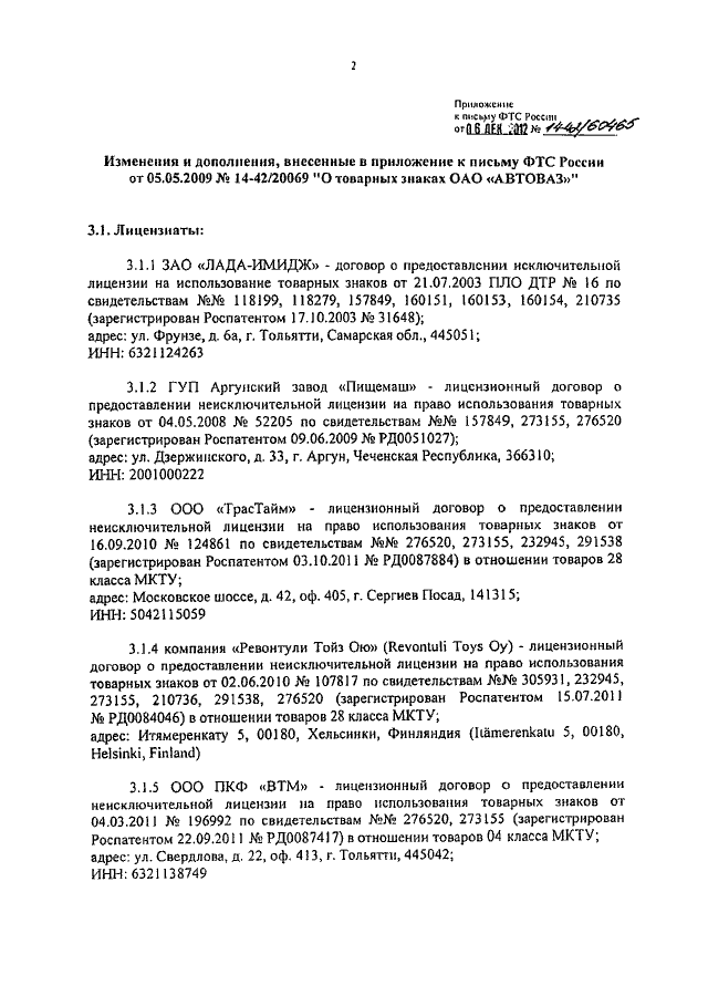 ПИСЬМО ФТС РФ от 06.12.2012 N 14-42/60465