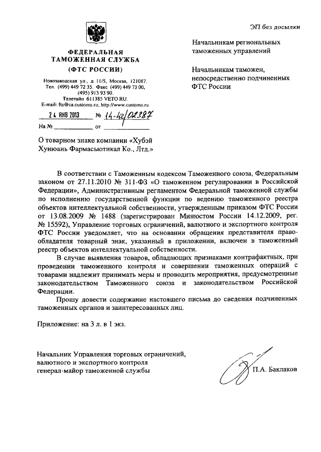 ПИСЬМО ФТС РФ от 24.01.2013 N 14-42/02387
