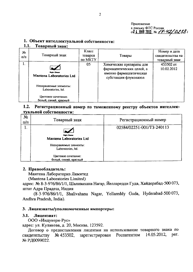 "О ТОВАРНОМ ЗНАКЕ КОМПАНИИ "МАНТЕНА ЛАБОРАТОРИЗ ЛИМИТЕД"