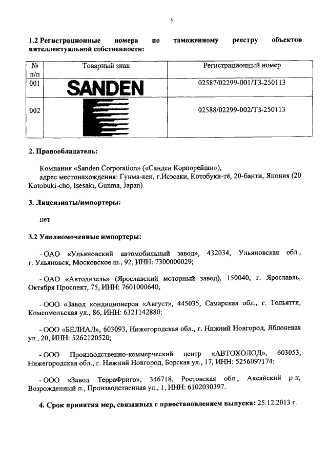 "О ТОВАРНЫХ ЗНАКАХ КОМПАНИИ "SANDEN CORPORATION"