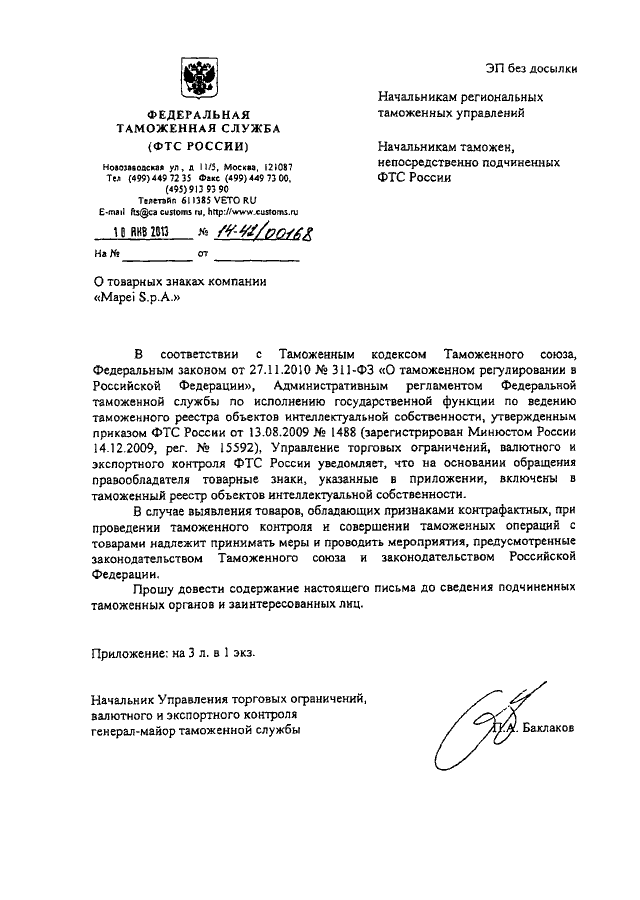 ПИСЬМО ФТС РФ от 10.01.2013 N 14-42/00168