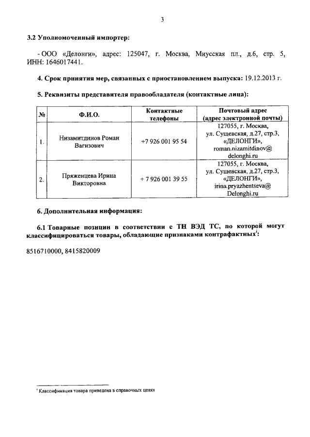 "О ТОВАРНОМ ЗНАКЕ "DE' LONGHI"