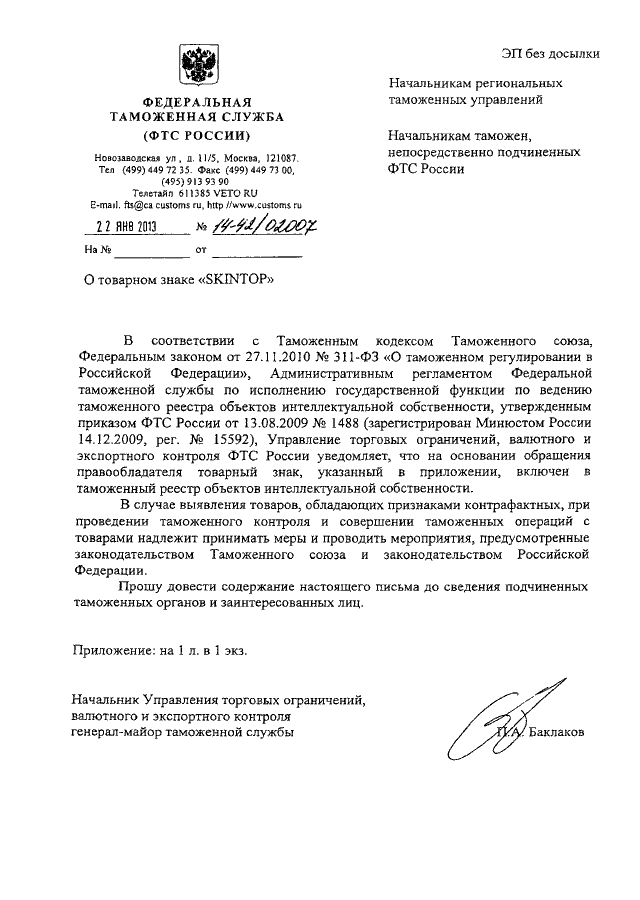 ПИСЬМО ФТС РФ от 22.01.2013 N 14-42/02007