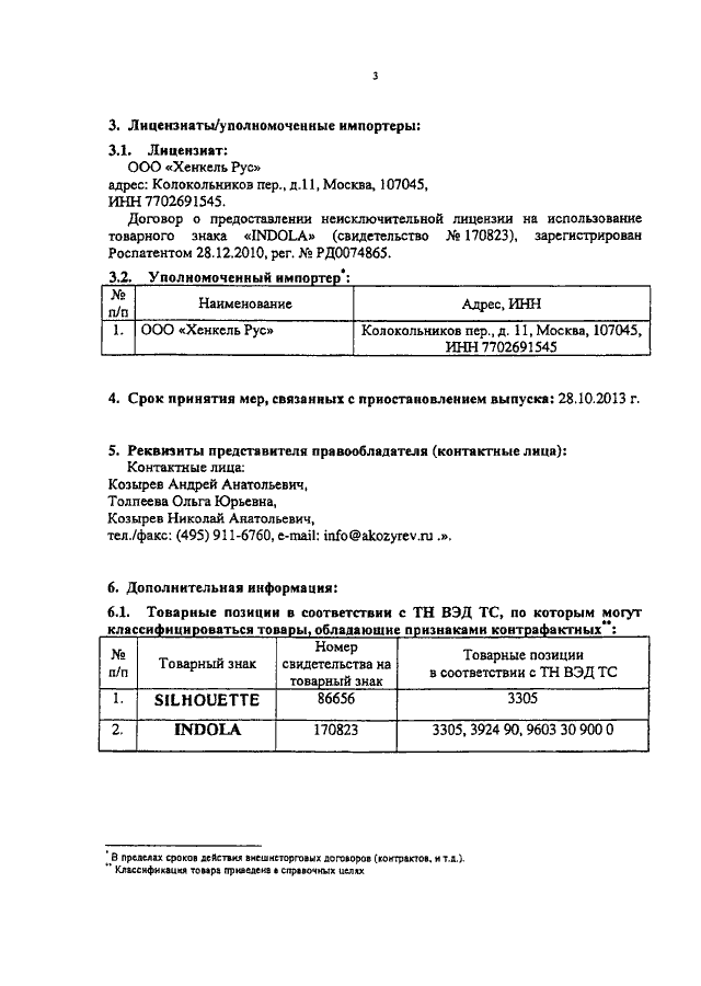 "О ТОВАРНЫХ ЗНАКАХ "SILHOUETTE", "INDOLA"