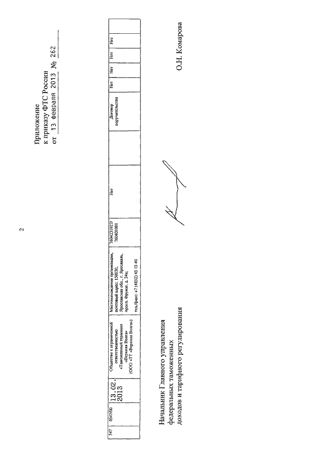 ПРИКАЗ ФТС РФ от 13.02.2013 N 262
