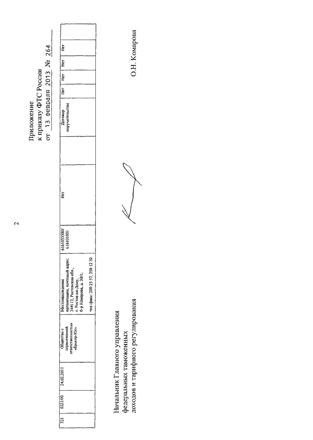 ПРИКАЗ ФТС РФ от 13.02.2013 N 264