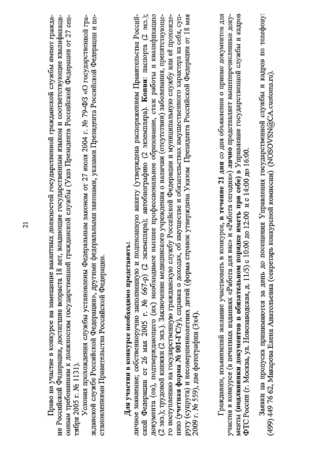 "ОБ ОБЪЯВЛЕНИИ КОНКУРСА НА ЗАМЕЩЕНИЕ ВАКАНТНЫХ ДОЛЖНОСТЕЙ ГОСУДАРСТВЕННОЙ ГРАЖДАНСКОЙ СЛУЖБЫ В ЦЕНТРАЛЬНОМ АППАРАТЕ ФТС РОССИИ"