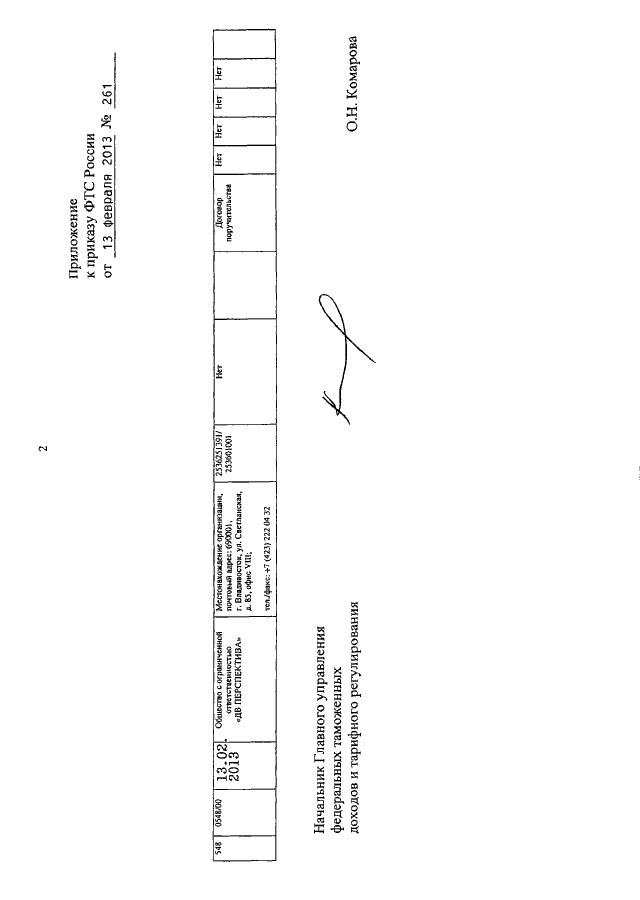 ПРИКАЗ ФТС РФ от 13.02.2013 N 261