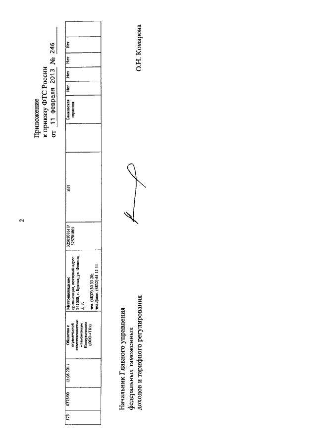 ПРИКАЗ ФТС РФ от 11.02.2013 N 246