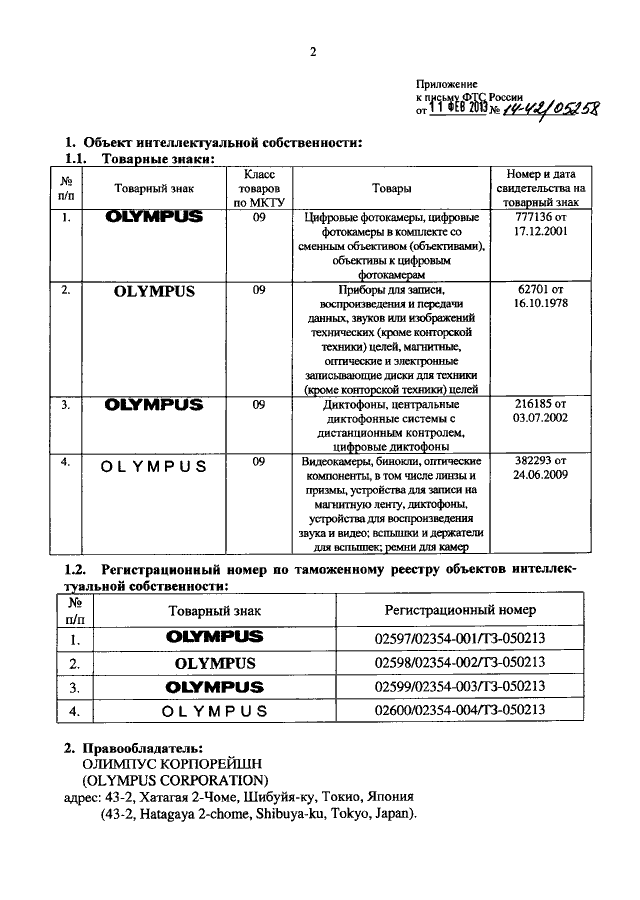 "О ТОВАРНЫХ ЗНАКАХ "OLYMPUS"