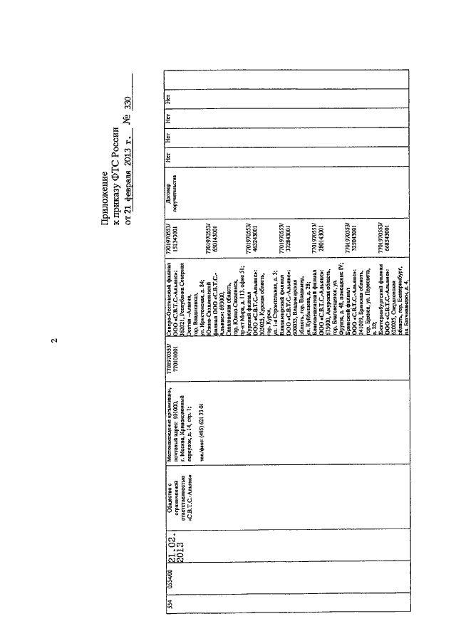 ПРИКАЗ ФТС РФ от 21.02.2013 N 330