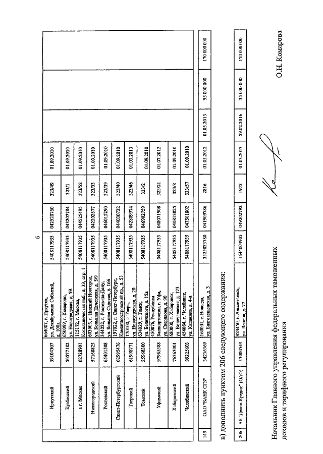 ПРИКАЗ ФТС РФ от 19.02.2013 N 308 "О ВНЕСЕНИИ ИЗМЕНЕНИЙ В РЕЕСТР БАНКОВ, ИНЫХ КРЕДИТНЫХ ОРГАНИЗАЦИЙ