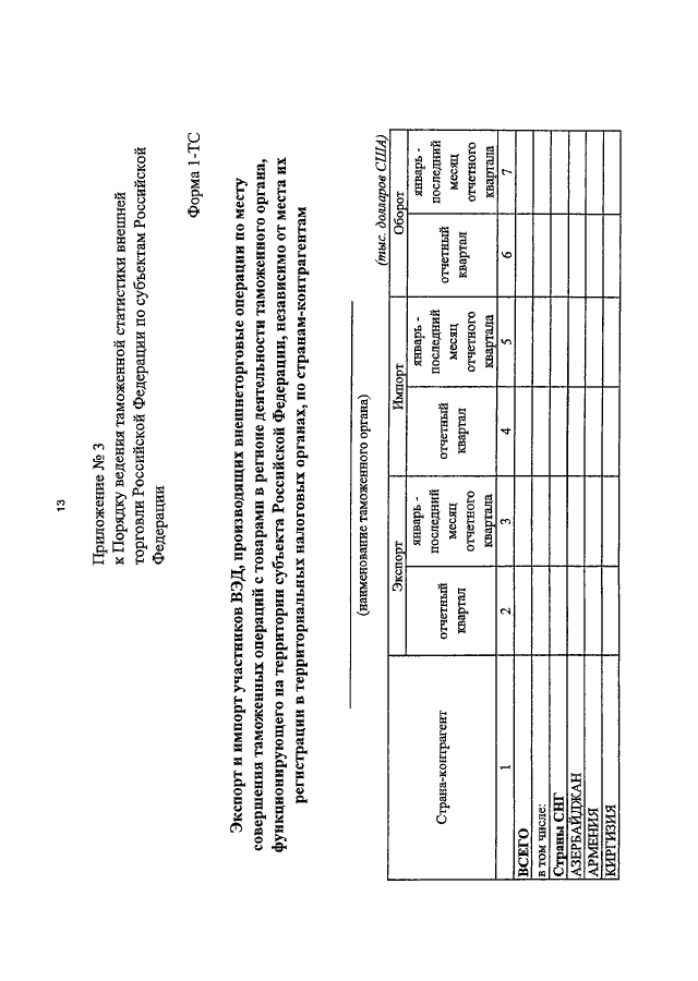 "ОБ УТВЕРЖДЕНИИ ПОРЯДКА ВЕДЕНИЯ ТАМОЖЕННОЙ СТАТИСТИКИ ВНЕШНЕЙ ТОРГОВЛИ РОССИЙСКОЙ ФЕДЕРАЦИИ ПО СУБЪЕКТАМ РОССИЙСКОЙ ФЕДЕРАЦИИ"