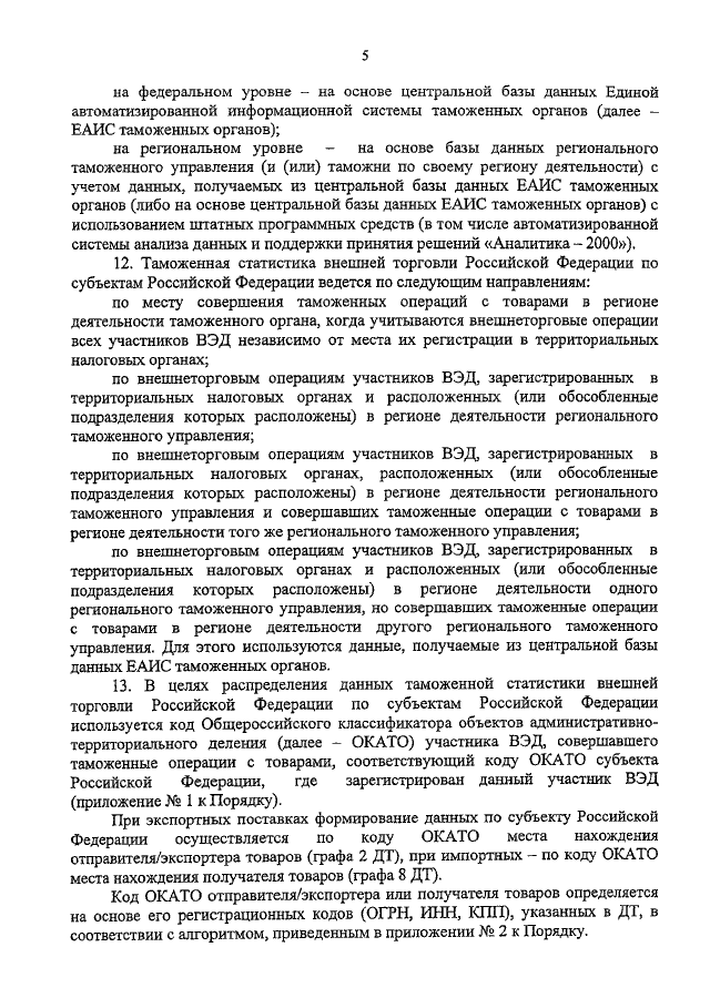 "ОБ УТВЕРЖДЕНИИ ПОРЯДКА ВЕДЕНИЯ ТАМОЖЕННОЙ СТАТИСТИКИ ВНЕШНЕЙ ТОРГОВЛИ РОССИЙСКОЙ ФЕДЕРАЦИИ ПО СУБЪЕКТАМ РОССИЙСКОЙ ФЕДЕРАЦИИ"