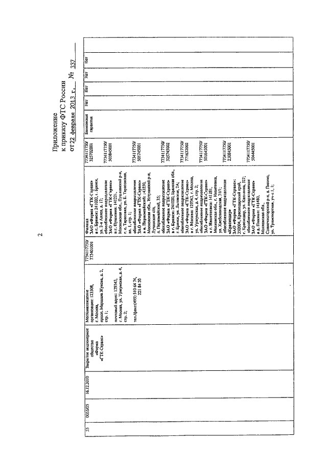 ПРИКАЗ ФТС РФ от 22.02.2013 N 337