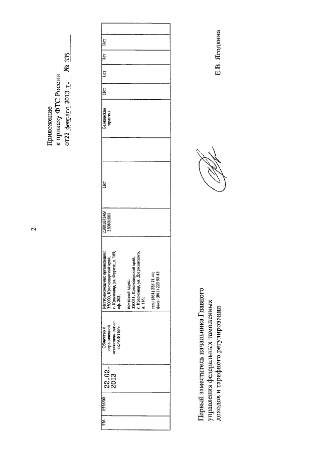 ПРИКАЗ ФТС РФ от 22.02.2013 N 335